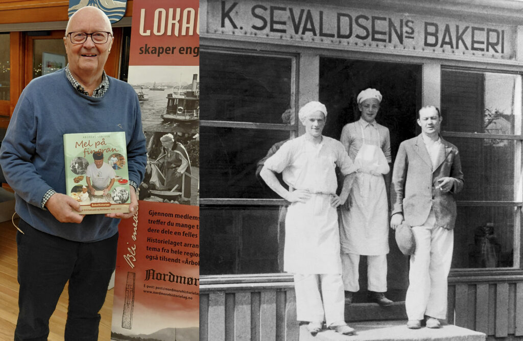Andreas Sandvik har skrevet ei bok om bakerne i Krsund og resten av Nordmøre – «Mel på fingran», som han hadde brukt nærmere 8 år på. Resultatet blei blitt nærmest en mastodont på mange kilo, som han sjøl fleipa med på møtet i Nordmøre Historielag mandag kveld i bystyresalen.